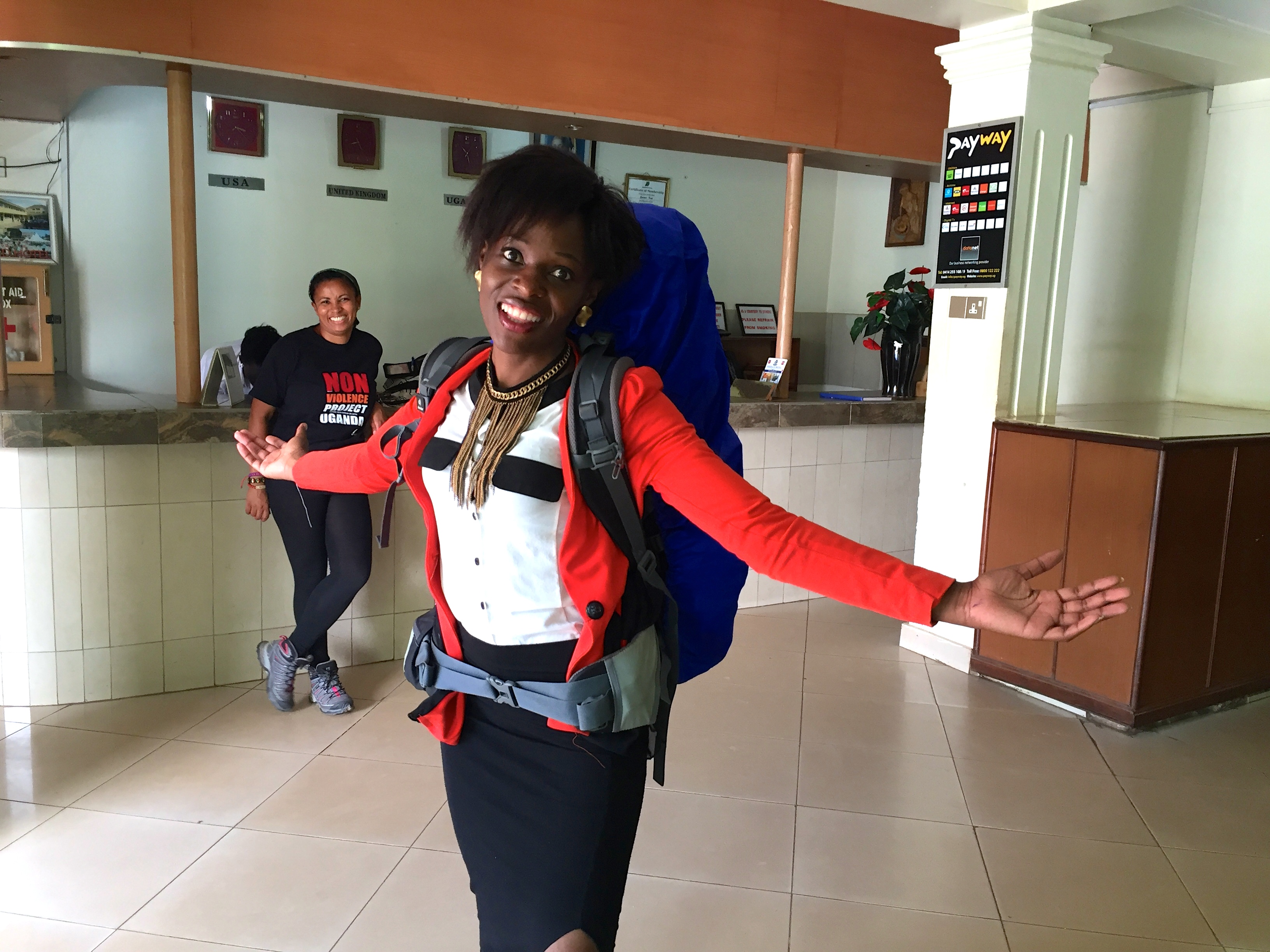 Eddy, Judith and Catherine took us to Entebbe Airport about a 1 hour drive from Kampala but not before a photoshoot at the start of our 24 journey to Chennai.