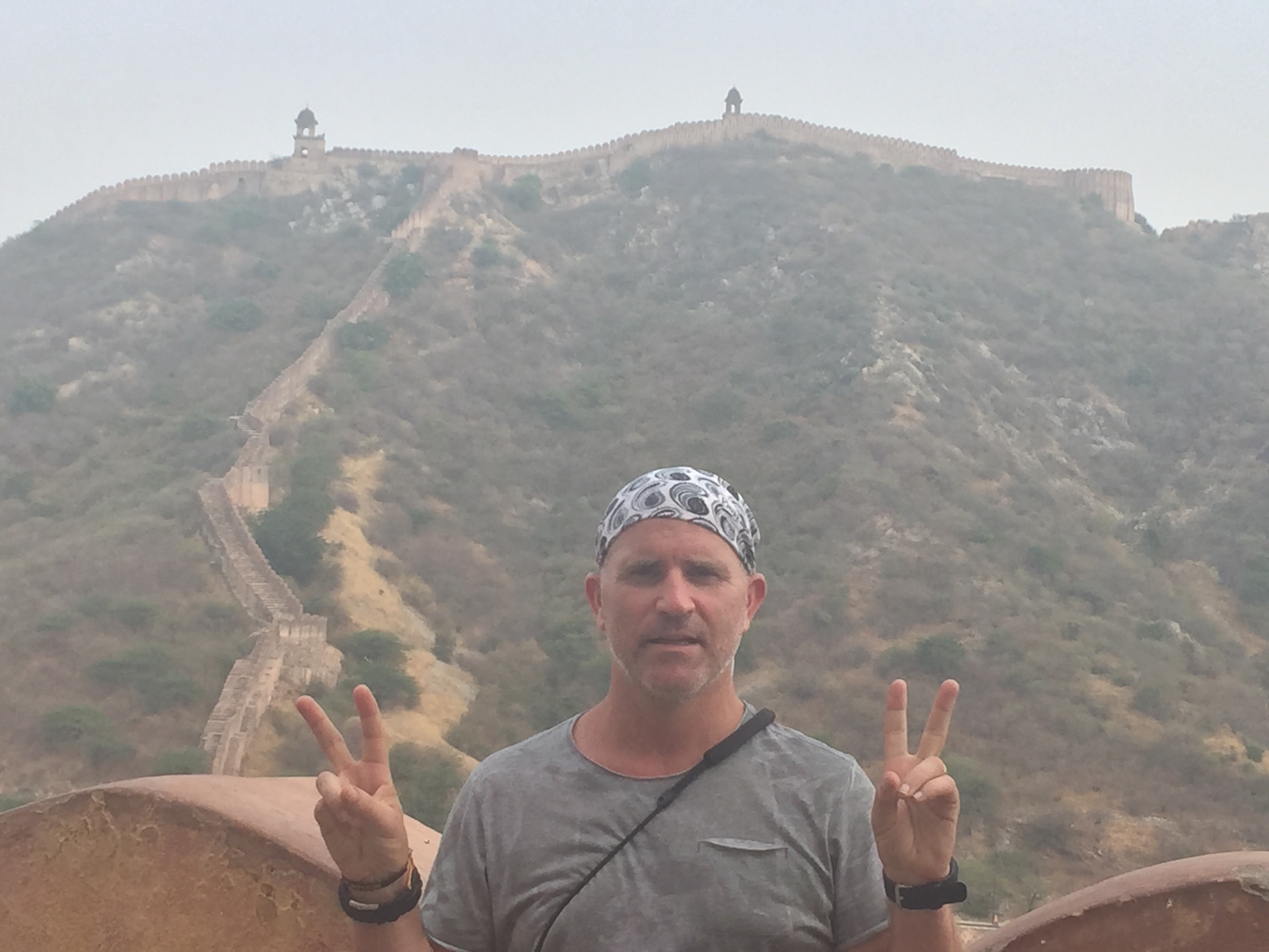 - Jaipur – nearly killed 2 annoying rickshaw drivers. Famous for the pink city. The Marahaj’s brilliant idea to impress the monarch HRH prince of Wales. Another 2 days sightseeing, City Palace, Amer fort, Water Palace, Hawa Mahal, Prince Albert museum, Monkey Temple. Got attacked by wayward monkey. Spotted a baby monkey getting a piggy back ride. Gorgeous dinner at the Peacock rooftop restaurant with newly made friends.