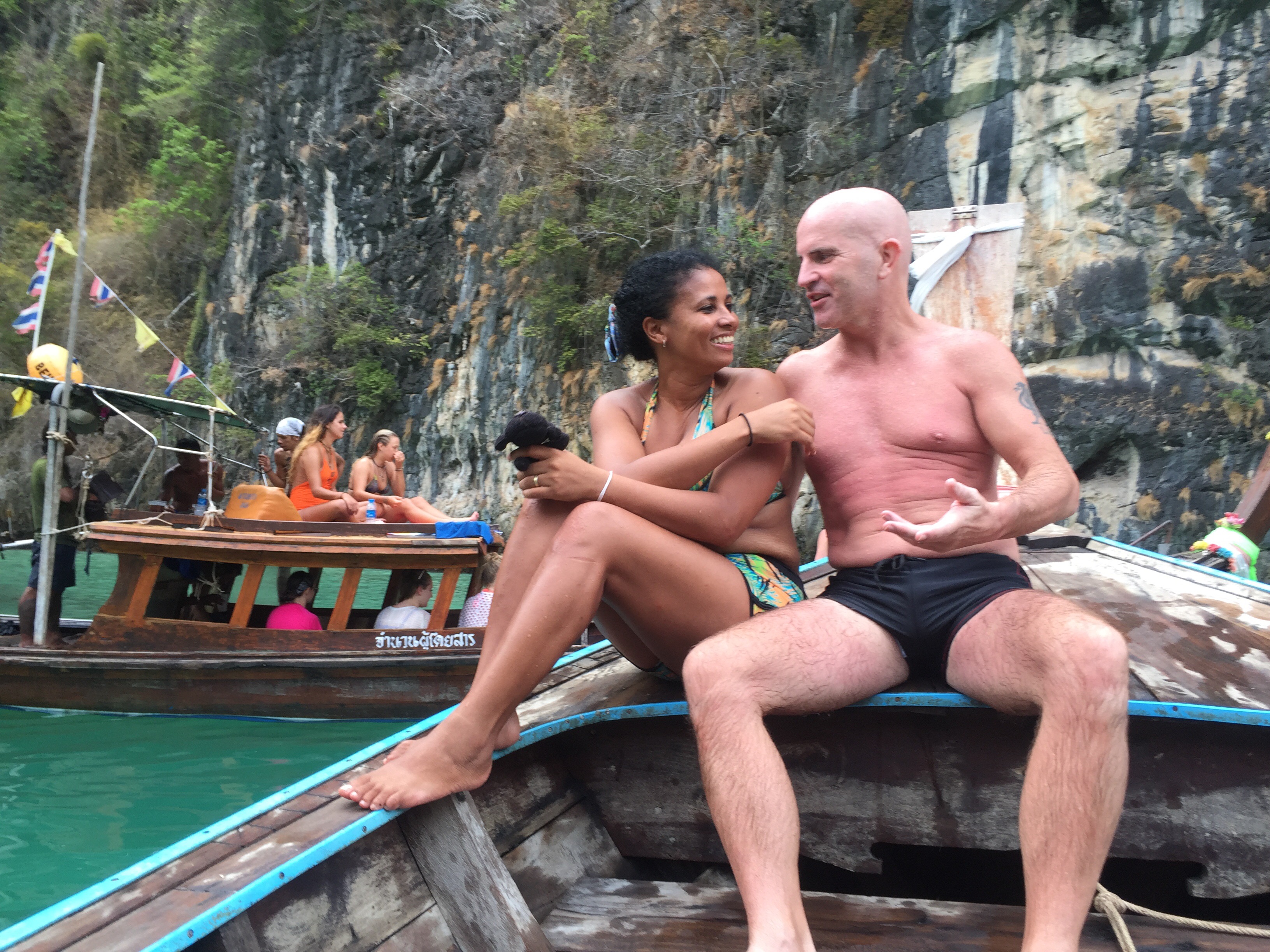 Our last sojourn into Thailand was to enjoy a bit of the island life. So as a last farewell to Thailand here’s the 411. Before we got to the islands we had some drama with the bus people from Phnom Pehn to Bangkok and then missed our flight. Long story short, we were really annoyed but silver lining we met a great guy from Catalunya and was our happy selves by the time we arrived in Phuket