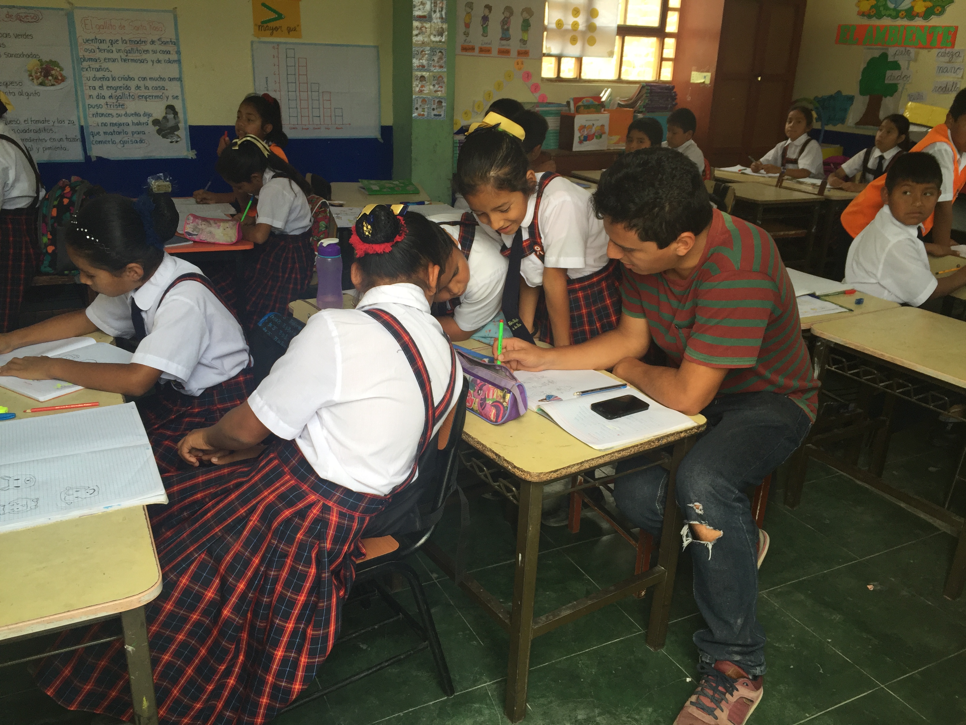 Simon Bolivar School has tough challenges like the real General it is named after, the walls and doors and ceiling are wooden so the noise from neighbouring classes echoes easily into each room, there are no playing fields only a concrete volleyball court and a dirt patch surrounding it, in comparison Telmo Hoyle has proper brick walls and a safer playing area and a little bit more developed. Julio Guitierrez is a huge school and has more infrastructure and the teaching job is a bit easier, whilst the newest of the four schools is, La Cantera which has transformed from its previous dwellings to something more modern.