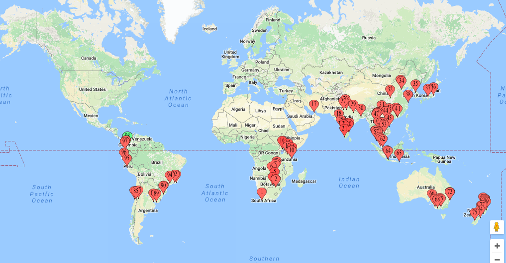 An amazing journey and still one continent to go By finnySeptember 26, 2016 ( 1 ) Share this: Click to share on Facebook (Opens in new window) Facebook Click to share on X (Opens in new window) X Click to email a link to a friend (Opens in new window) Email Click to print (Opens in new window) Print Like Loading... Categories: Colombia, Crazy Stories, Destinations, South America, TransportTags: bike, boat, bus, Cali, car, ferry, metro, plane, taxi, train, tram Related Articles Flying high and into the strange By finnyAugust 14, 2017 A pitstop in Cape Town By finnyAugust 9, 2017 ( 2 ) Globetrotting around the circumference of the earth, three times in two years By finnyJuly 6, 2017 1 comment › Natalie Charlton September 28, 2016 • 6:06 pm Incredible! Do you know on Google My Maps you can draw a line between each pin to create the path you made too. Love drawing up my travel maps when i return from an adventure! LikeLike Reply ↓ Leave a comment Cancel reply Δ