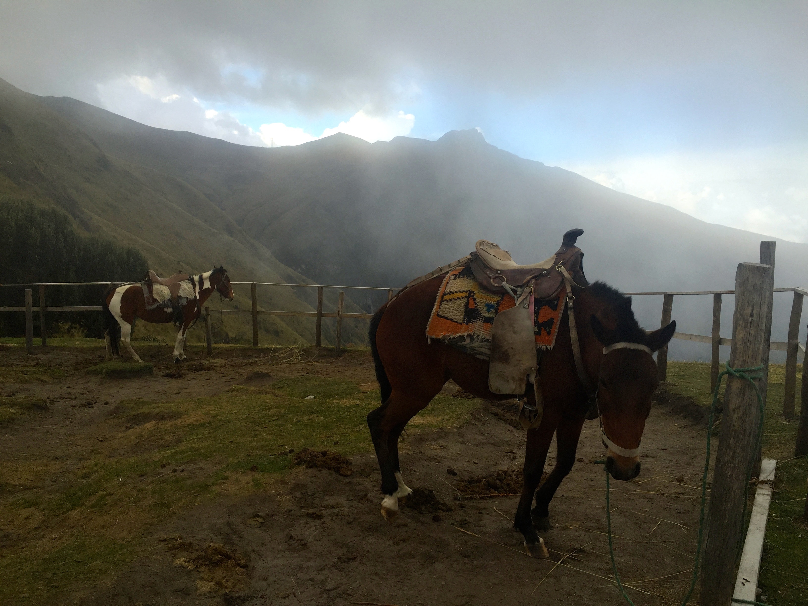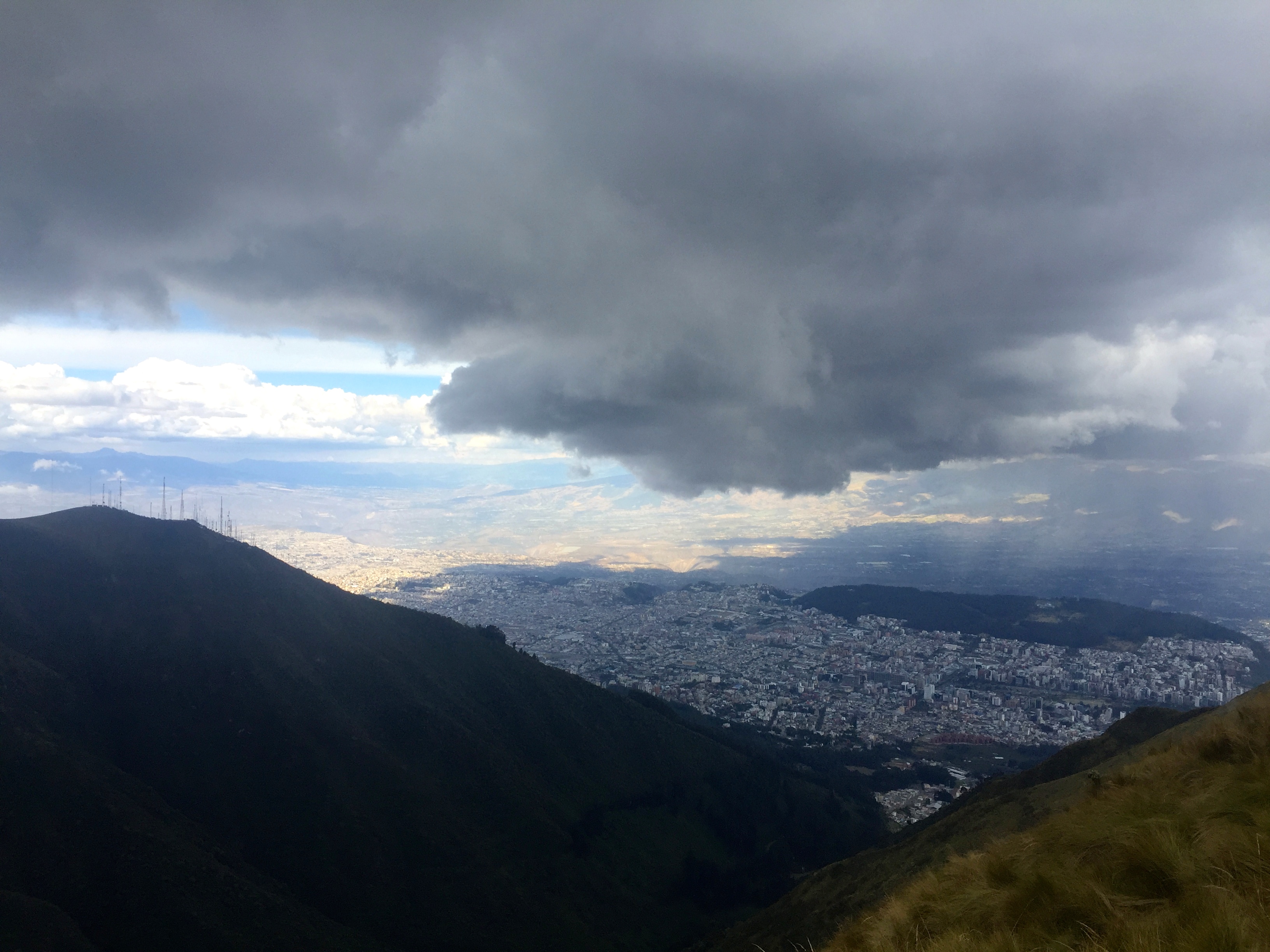 Pichincha, an active volcano sits above and around the capital city of Quito, which nestles neatly into this huge beast of a mountain. At 4800 metres above sea level, we managed to reach 4100 metres, when the altitude and climate became somewhat uncomfortable for us novice travellers. Well maybe not novice, but not climbers 🙂