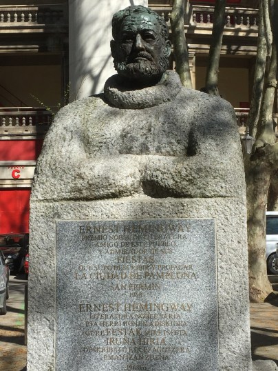 The great Ernest Hemingway visited Pamplona many times and loved to write here and also about this region – I think Fiesta is based on Pamplona – anyhow, the statue of the brilliant author gives an idea how revered he is and the main plaza with cafes and restaurants abundant in their claim that he either stayed, drank, wrote there or visited them.