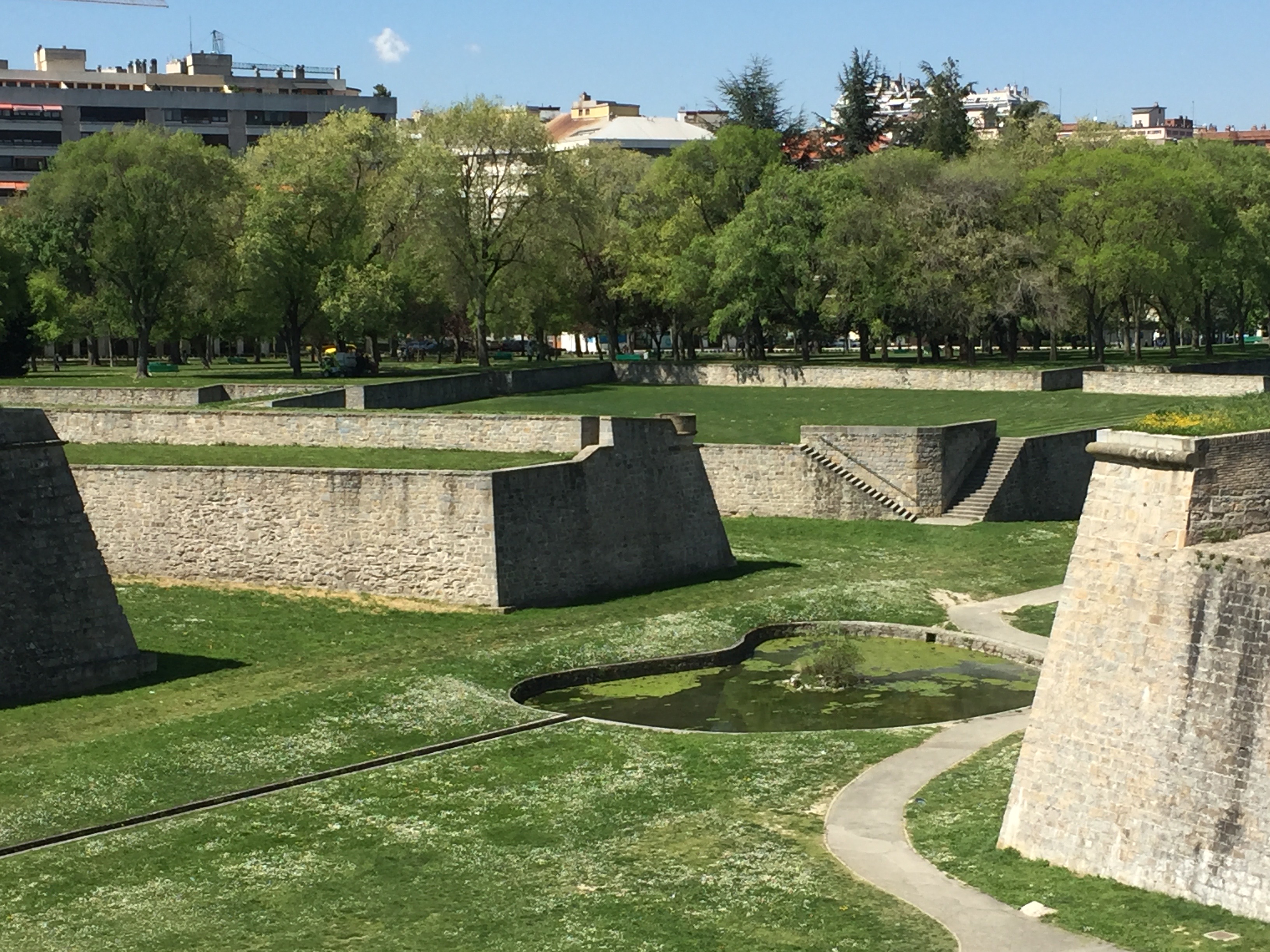 Pamplona, the city of the bull run, nestled only 1 hour from San Sebastian in the Navarra Region, has this amazing citadel complex on the outside of the old city walls. Built in the 15th century it housed the soldiers protecting the city and looking from our view point you could see how this pentagon-shaped construction would have confused attackers and also allowed the soldiers to trap them in a well thought out design that attempts to filter and narrow people to specific points. Confusion tactics supreme!